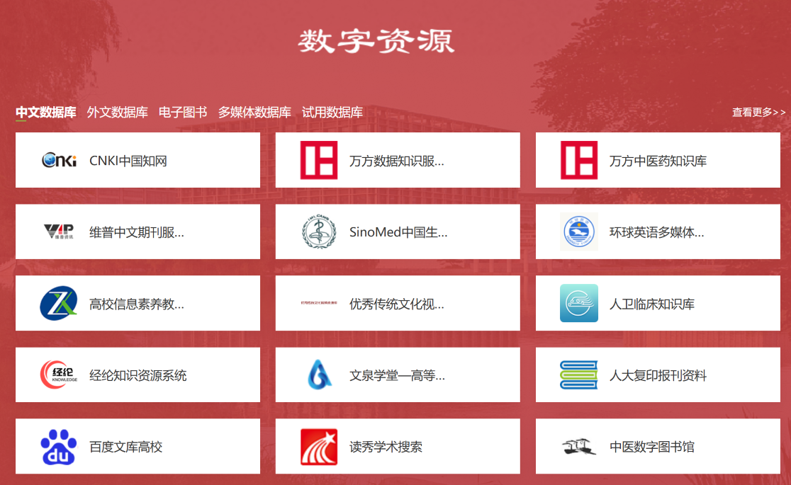 在“高校/机构名称”搜索框内输入河南中医药大学,完成统一身份认证后即可查看数字资源列表。
